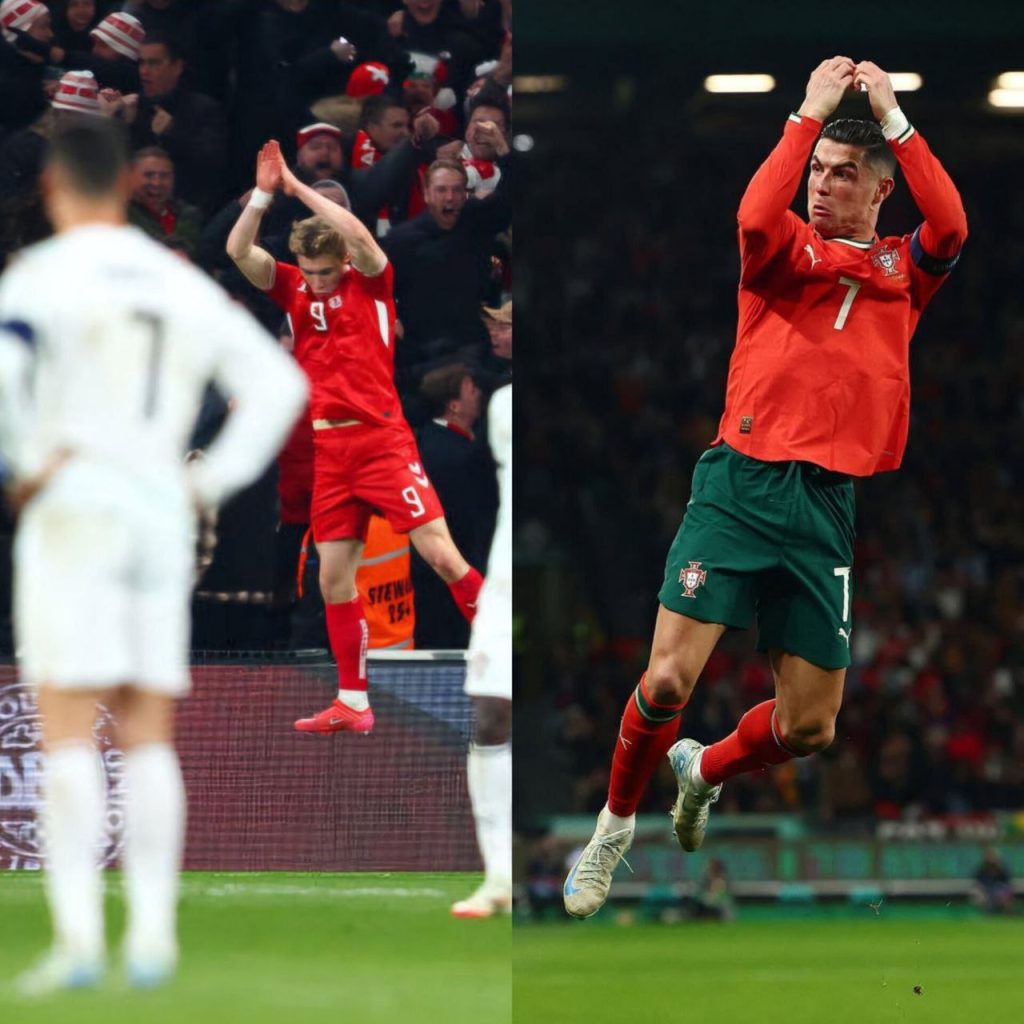 بازی رفت دانمارک و پرتغال: خوشحالی هویلوند با تقلید از رونالدو!